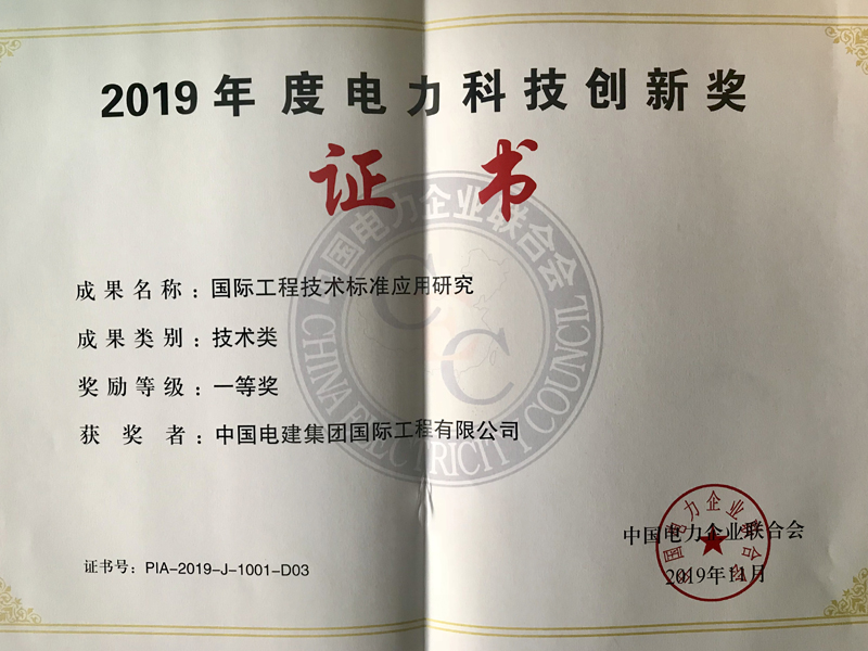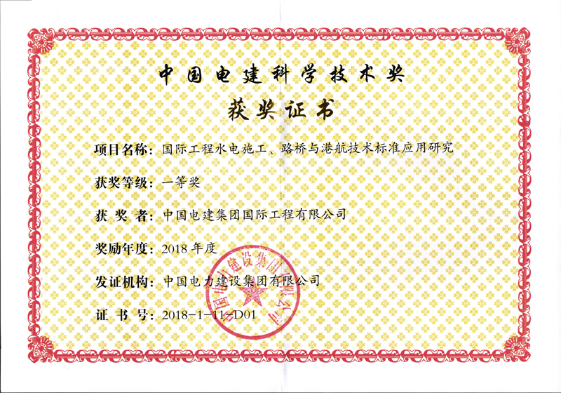 國際工程水電施工、路橋與港行技術標準應用研究一等獎