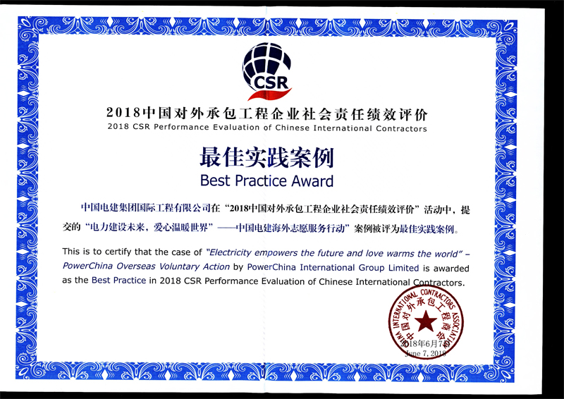 2018中國對外承包工程企業社會責任績效評價最佳實踐案例