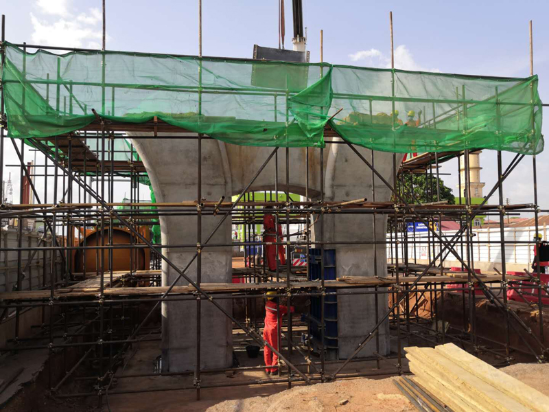 目前加納正處于新冠疫情高峰期,項目部在加強落實疫情防控工作的同時狠抓生產,提前制定橋墩施工方案。由于橋墩施工精度要求高、鋼筋鋪設密集,混凝土澆筑有很大難度,為確保混凝土各項性能滿足設計和規范要求,項目部精心組織,對立模、綁扎鋼筋、砼拌合運輸澆筑、拆模、養護等每道工序嚴格控制,最終完美地完成了第一個橋墩的施工。