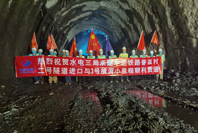 5月4日,由中國電建水電三局承建的普亞村二號隧道進口與新增橫洞小里程順利貫通,在火熱的貫通現場,建設者會師千米長隧,用特殊的方式獻禮“五四青年節”,唱響了無奮斗、不青春的高歌,取得了“大干90天”勞動競賽階段性勝利,標志著水電三局中老鐵路建設取得重大突破,為中老鐵路全線如期通車奠定了堅實基礎。