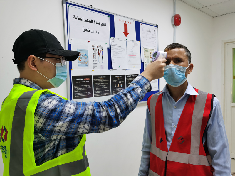 在各個項目現場,還有許許多多和他一樣的領導干部,沖鋒在前,堅守一線。烈日下,穿戴齊全的防護設備正在檢查防疫,測體溫的關鍵崗位是他們;加班至深夜,向中國駐當地使領館報送疫情情況的是他們;在項目集控室等關鍵崗位上揮汗如雨,緊張工作的是他們;一天艱苦的施工結束,端著水杯走進宿舍詢問員工情況,關心幫助大家生活,做好心理疏導的也是他們。他們如一面面飄揚在沙漠中的旗幟,用平凡點滴的行動,,彰顯著領導干部吃苦在前,以身作則的本色。正是因為有了這些疫情中的“逆行者”和“堅守者”,項目的疫情防控和生產經營工作才能有序平穩地開展就有了。